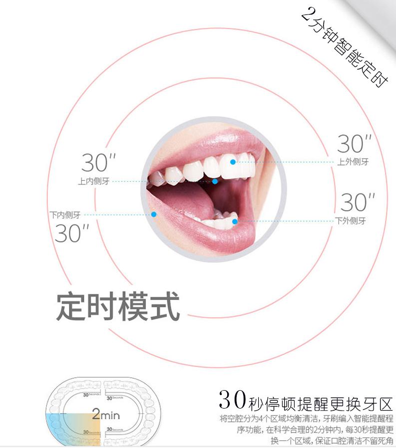 然后還有2分鐘定時(shí),30秒暫停停頓提示功能,不帶腦子都可以養(yǎng)成良好的刷牙習(xí)慣啊